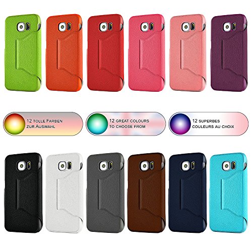 MATERIALE - L'ecopelle flessibile, robusta e di lunga durata, oltre a un supporto stabile in plastica sono stati utilizzati per la realizzazione del prodotto. La custodia del Samsung Galaxy S6 ha una lavorazione ottimale: incavi puliti, angoli e bordi arrotondati e rinforzati. Il guscio in plastica è saldamente fissato all'ecopelle e garantisce una presa sicura dello Samsung Galaxy S6.