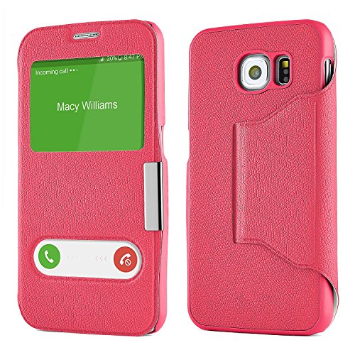 Cover OneFlow per Samsung Galaxy S6 Custodia con finestra | Flip Case Astuccio Cover per cellulare apribile | Custodia cellulare Cover rotettiva Accessori Cellulare protezione Paraurti BERRY-FUCHSIA