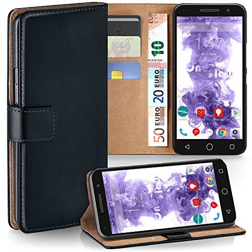 Cover OneFlow per Vodafone Smart Prime 6 Custodia con scomparti documenti | Flip Case Astuccio Cover per cellulare apribile | Custodia cellulare Cover rotettiva Accessori Cellulare protezione Paraurti DEEP-BLACK