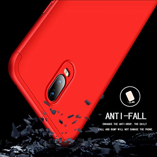 FMPC Cover per Oneplus 6T, Custodia in PC Rigida con 3D Vetro Temperato Struttura[3 in 1] Bumper Finitura Opaca Corpo Intero Ultra Slim Case Antiurto AntiGraffio-Rosso
