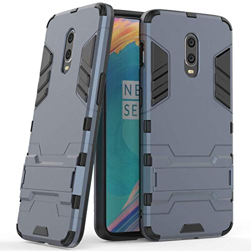 Cover per OnePlus 6T / OnePlus 7 (6,41 Pollici) 2 in 1 Hybrid Dual Layer Completamente Shock Resistente Armour con Cavalletto Funzione Custodia (Blu Nero)