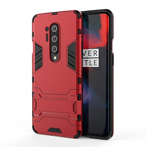Cover per OnePlus 8 Pro (6,78 Pollici) 2 in 1 Hybrid Dual Layer Completamente Shock Resistente Armour con Cavalletto Funzione Custodia (Rosso)