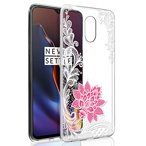 Cover Oneplus 6T, ZhuoFan Custodia Cover Silicone Trasparente con Fiore Animali Disegni Ultra Slim TPU Silicone Morbido Antiurto 3d Cartoon Bumper Case per Oneplus 6T Smartphone (Mandala, Bianco-Rosa)