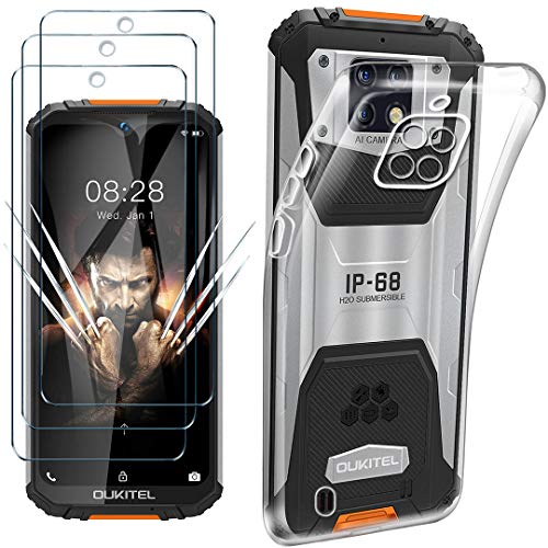 HYMY Cover per OUKITEL WP6 (2020) + 3X Pellicola Protettiva - Morbida Trasparente Silicone Bumper Case TPU Protettivo Copertura Custodia + Vetro temperato per OUKITEL WP6 (2020) (6.3") -Clear
