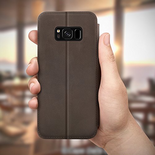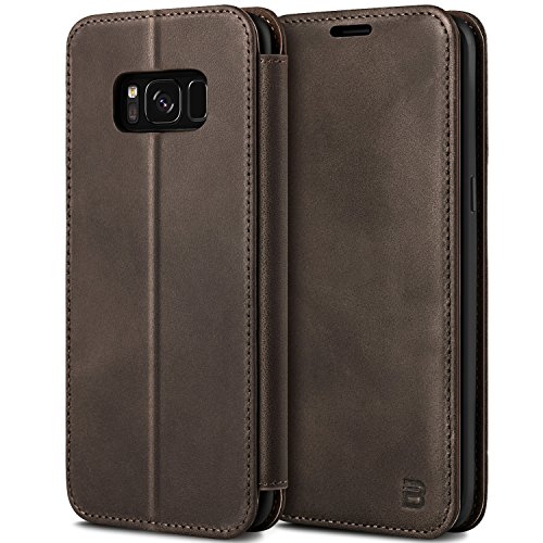BEZ® Cover in Pelle per Samsung S8, Custodia Compatibile per Samsung Galaxy S8, Portafoglio a Flip Realizzata a Mano in Sottile Vera Pelle di Lusso, Classica a Libro con Supporto -Chocolate