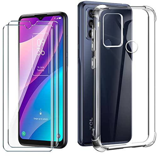 Cover per TCL 306+ 2x Pellicola Protettiva - Morbida Trasparente Silicone Bumper Case TPU Protettivo Copertura Custodia 9H vetro temperato