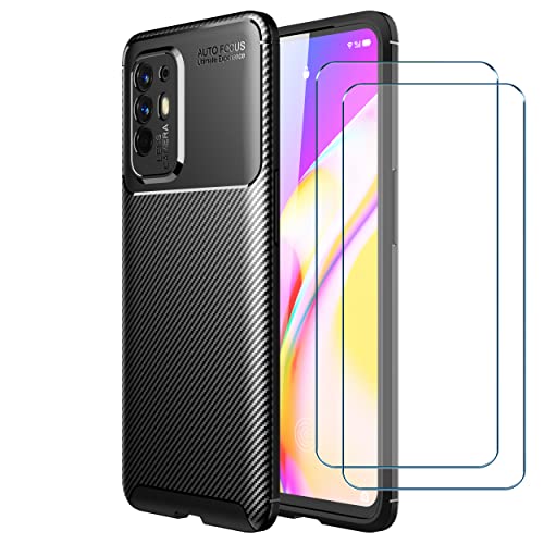 Cover per Oppo A94 5G + [2 Pezzi] Pellicola Protettiva, Weideworld Robusta per Armature Case in Silicone Morbido e Sottile Custodia per Oppo A94 5G, Nero