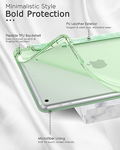 MoKo Cover Protettiva per Nuovo iPad 9a Gen 2021 / iPad 8a Gen 2020 / 7a Gen 2019, iPad 10.2 Case in TPU con Supporto Integrato Custodia a Tri-Fold, Protezione Urti Graffi Accessori, Verde Melangiato