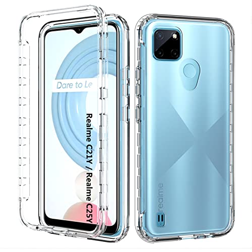 Cover per Realme C21Y, Custodia 2in1 Dual Layer Ibrida [360°] Full Body Antiurto Protettiva [Silicone TPU Fronte] e [Rigida Plastica Back] caso per Realme C25Y / Realme C21Y, [Transparente]