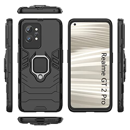 Cover per Realme GT 2 Pro/Realme GT2 Pro, Custodia con 360° Rotante Magnetica Supporto 2in1 Dual Layer Ibrida Full Body Protettiva Morbido TPU Bumper, Rigida Plastica Back Armor Antiurto, Nero
