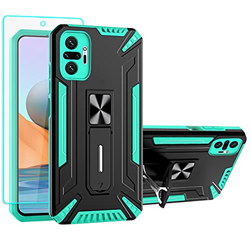 Cover Redmi Note 10 Pro, Cover Xiaomi Redmi Note 10 Pro con Pellicola, Grado Militare Anello Ring Supporto Case TPU Bumper Silicone Custodie per Xiaomi Redmi Note 10 Pro (mint)