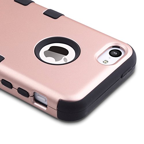 ULAK - Cover Rigida per iPhone 5C - iPhone 5C Custodia Ibrida a 3 Strati in Silicone a Prova di collisione per Apple iPhone 5C (Rose Gold + Black)