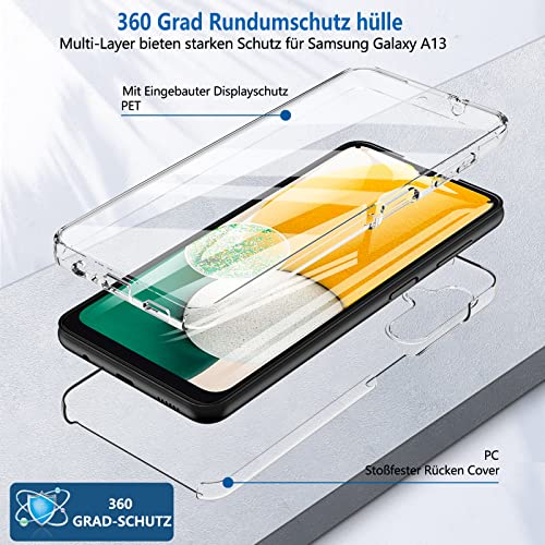 ➤ 【Protezione a 360 Gradi】 Custodia protettiva a 360 gradi con protezione per lo schermo integrata, protegge la fotocamera del Galaxy A04S/A13 5G e lo schermo dai graffi. Il design a 360 ° del corpo completo offre un'ottima protezione per il tuo telefono da urti / polvere / sabbia e altro ancora.