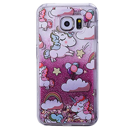 WE LOVE CASE Cover per Samsung S6 Custodia Glitter Galaxy S6 Cover Trasparente Rigida 3D Floating Quicksand Cristallo Bling Diamond Strass Ultra Slim Protettiva Bumper Caso Plastic Hard Case per Samsung Galaxy S6 G920 - Unicorno Stella Rose Oro