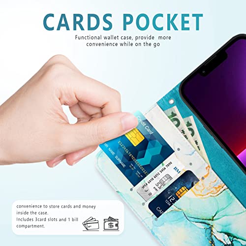Cover per Samsung Galaxy A52 5G/A52S 5G/A52 4G Marmo, Caso in PU Portafoglio Custodia con TPU Pelle Premium Antiurto Custodia con Flip Case [Kickstand] [Slot per Schede] [Chiusura Magnetica] - Verde