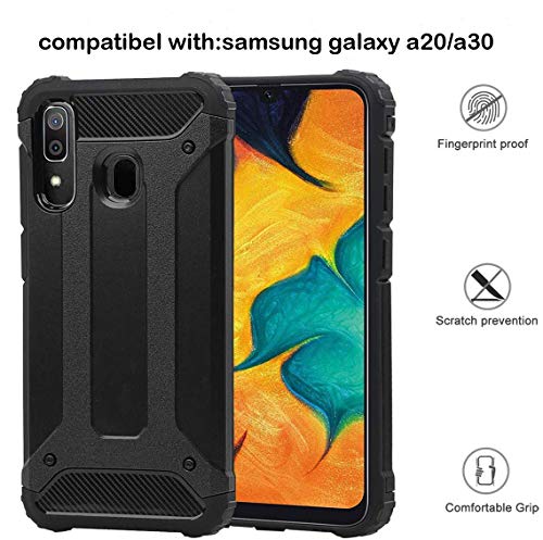 Cover per Samsung Galaxy A20/A30(non compatibile con A20e) + vetro temperato, Weideworld [Armor Box] [doppio strato] - Custodia protettiva antiurto per Samsung Galaxy A20/A30, colore: Nero