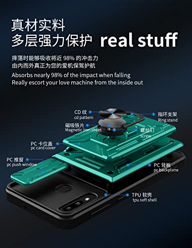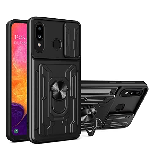 OATE Cover per Samsung Galaxy A20/A30 Custodia,Scorrevole Protezione Fotocamera e Supporto di Anello Rotante,Hard PC Back Cover e TPU Bumper Protettiva Case [Antiurto Antiscivolo AntiGraffio],Nero