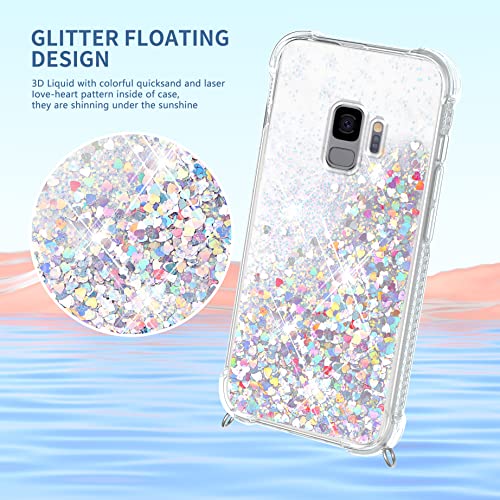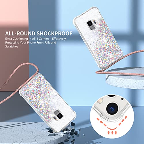 TUUT Cover per Samsung Galaxy S9 con Cordino, Glitter Bling Liquido Custodia Sparkly TPU Silicone Protettivo Morbido Brillantini Quicksand Cellulare Cover con Cordoncino Case -Oro Rosa