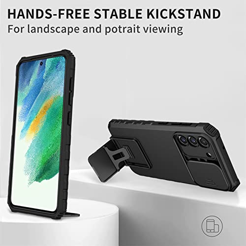 Cover per Samsung Galaxy S21 FE 5G, Custodia 2in1 Dual Layer Ibrida 360 Gradi Full Body Antiurto Protettiva, Bumper e Rigida Plastica Armor Proteggi caso con Scorrevole Protezione Fotocamera, Nero