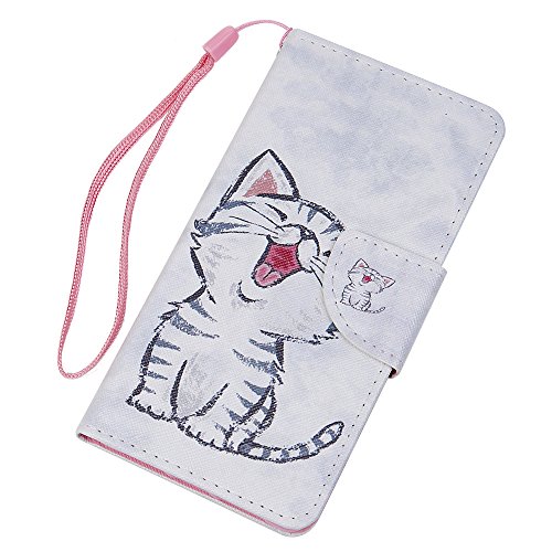 Cover per Samsung Galaxy J3 2017 Flip, Custodia Libro Pelle PU e TPU Silicone con Funzione Supporto Chiusura Magnetica Portafoglio Libretto Bumper Case per Samsung Galaxy J3 2017, Gatto Felice