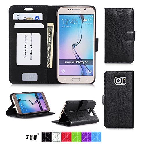 FYY Cover per Samsung Galaxy S6, Custodia Samsung Galaxy S6, Flip Custodia Portafoglio Libro Pelle PU con Slot per Schede e Chiusura Magnetica per Samsung Galaxy S6-Nero