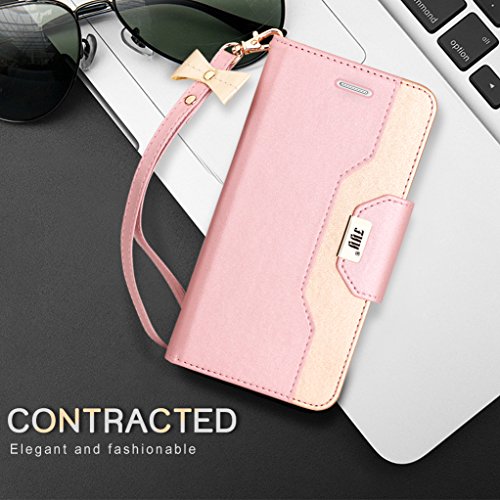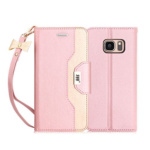 FYY Cover per Samsung S7 Edge,Cover S7 Edge,Cover Galaxy S7 Edge, Flip Custodia a Portafoglio Libro Pelle PU con Lo Specchio Cosmetico e Bow-Knot Strinscia per Samsung Galaxy S7 Edge-Rosa Oro