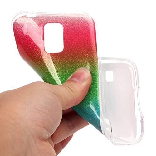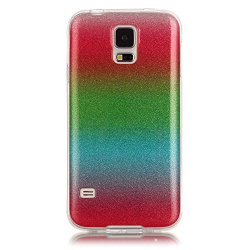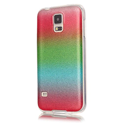 Cover per Samsung Galaxy S5 Custodia Silicone, TOCASO Copertura di Ccuoio Cover in TPU Guscio Cambiamento Graduale Luccichio Glitter per Samsung Galaxy S5 Protezione Caso Ultra Sottile Shock-Absorption shell protettivi Bumper Covers di Gomma Alto Morbido Clear Gel Sottile Conchiglia Copertina Magro Flessibile Protettiva Cases di telefono Rubber Case + 1x Nero Stylus Blu, Verde e Rosso