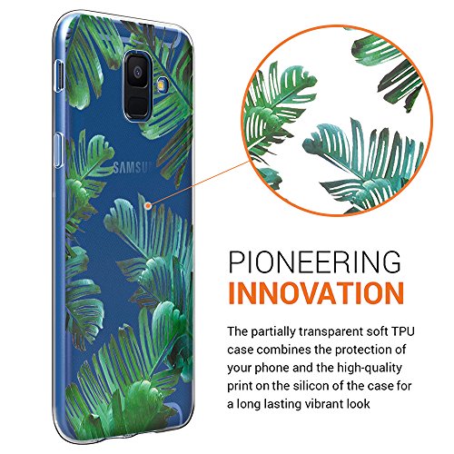 Cover Samsung Galaxy A6, Eouine Custodia Cover Silicone Trasparente con Disegni Ultra Slim TPU Silicone Morbido Antiurto 3D Cartoon Bumper Case per Samsung Galaxy A6 2018 5,6" Smartphone (Le Foglie)