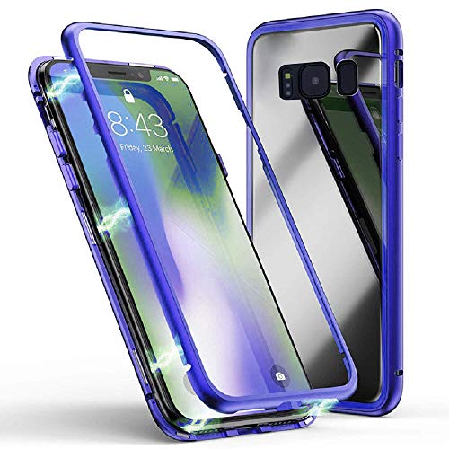 Cover per Samsung Galaxy S9 Plus, Forte Tecnologia di Adsorbimento Magnetico, Jonwelsy Ultra Sottile Custodia Posteriore in Vetro Temperato con Bumper in Metallo [Supporta la ricarica wireless] (Blu)