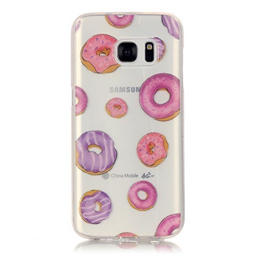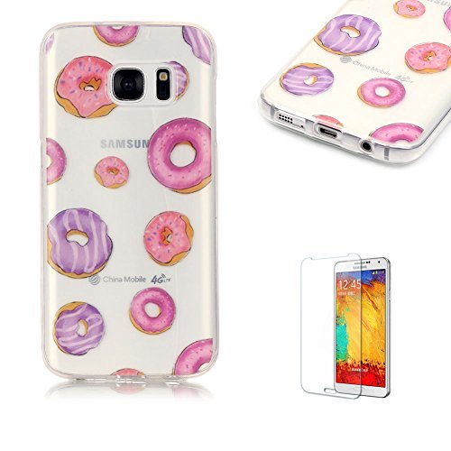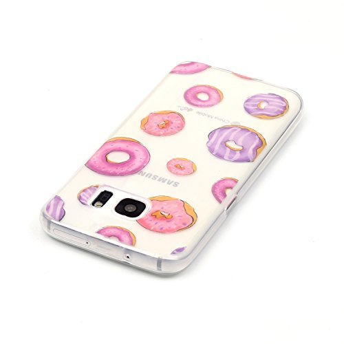 Cover per Samsung Galaxy S7 G930,Funyye Morbida Sottile TPU Gel Silicone Custodia Originale Antiscivolo Elegante Protettiva Caso Chiaro Copertura Slim Thin Skin Shell + Pellicola Protettiva per Samsung Galaxy S7 G930 Trasparente Soft Bumper - Ciambelle Rosa e Viola