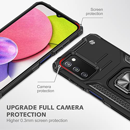Cover per Samsung Galaxy A03S, [360 Gradi Magnetica Supporto], Custodia 2in1 Dual Layer Ibrida Full Body Protezione Anti-Shock Armor, Nero