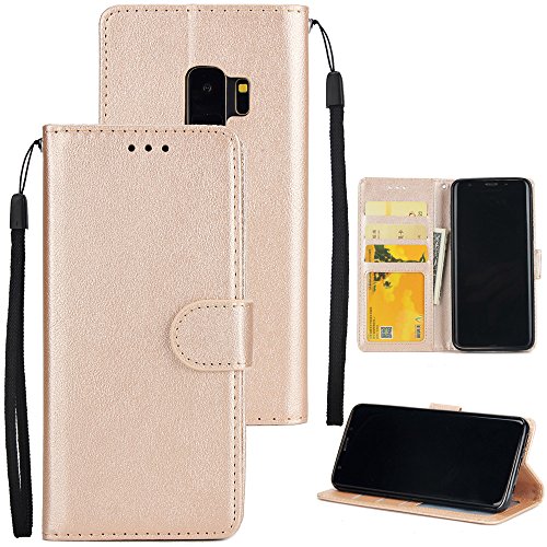 Cover Samsung Galaxy S9 Plus PU Leather Cove, CaseforYou [PU Cuoio][Chiusura magnetica][Funzione stand] Slim Wallet Case Antiurto Antiscivolo A prova di polvere Drop-Protezione Flip Cover Custodia Portafoglio a Libro per Samsung Galaxy S9 Plus PU Leather Covercon Slot per schede (d'oro)