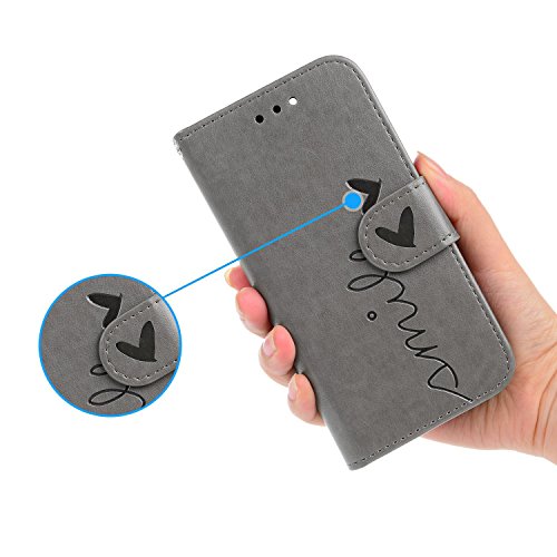 Cover per Samsung Galaxy S8 2017 Pelle, Custodia per Samsung Galaxy S8 2017, Libro Premium Retro PU e Snap-on Book Style Internamente Silicone TPU Case [2 in 1, Separato] [Pellicole Protettive] - Bonice Stand Flip Wallet Card Slot Fessura Rimovibile Cover Morbido Leather,Goffratura Amare, Chiusura Magnetica, Supporto Stand, Portafoglio Porta Carte e Protettiva - Grigio