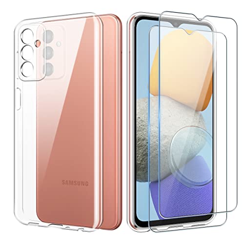 Cover per Samsung Galaxy M23 5G / Galaxy M13 4G【6.6"】 + 2 Pezzi Vetro Temperato Pellicola Protettiva, Silicone Morbido TPU Protezione Case, Ultrasottile Antiurto e Antigraffio - Trasparente
