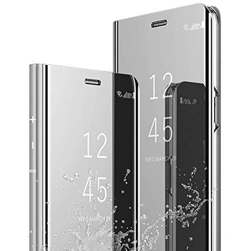 Cover per Samsung Galaxy A21s 2020 6,5 pollici, con funzione di supporto A21S, a specchio trasparente, trasparente, con visione a flip a 360°, colore: argento