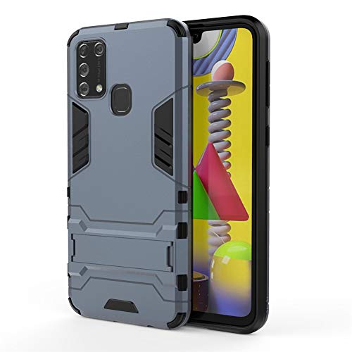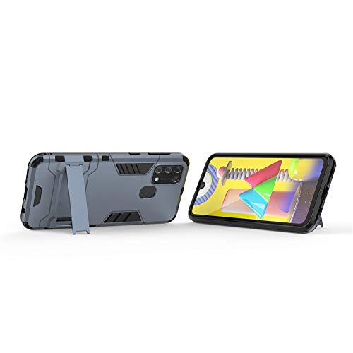 Cover per Samsung Galaxy M31 (6,4 Pollici) 2 in 1 Hybrid Dual Layer Completamente Shock Resistente Armour con Cavalletto Funzione Custodia (Blu)