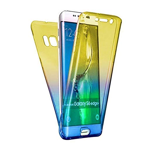 Cover per Samsung Galaxy J7 2017,SKYXD Custodia Fronte Retro 360 Gradi TPU Trasparente Silicone Morbida Full Body Protezione Completa Crystal Clear 2 in 1 Cover Case Touch Screen Protettivo dell'ente Proteggi Schermo Arancione Giallo ed Blu Silicone Custodia per Samsung Galaxy J720 J7 2017