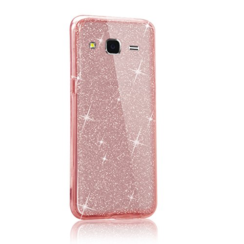Cover per Samsung Galaxy J5 SM-J500F 2015 Version, Bonice Ultra Sottile Brillantini Bling Glitter Morbido TPU Full Body Protezione a 360° Resistente Ai Graffi Trasparente TPU Silicone Accessori Protettiva protezione 2 in 1 Slim Anteriore E Posteriore - Oro Rosa