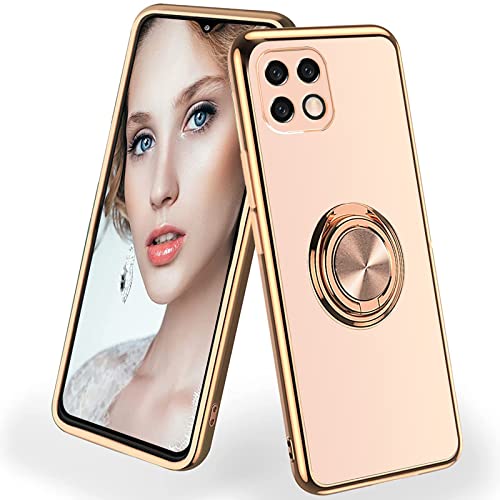 Cover per Samsung Galaxy A22 5G,Sottile Morbida Placcatura TPU Silicone Custodia con 360° Magnetica Anello Ring Supporto per Donne Antiurto Protettiva Case per Samsung Galaxy A22 5G (oro rosa)