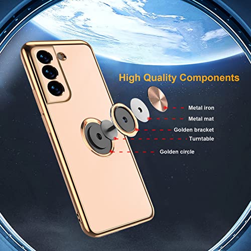 Cover per Samsung Galaxy S21 FE,Sottile Morbida Placcatura TPU Silicone Custodia con 360° Magnetica Anello Ring Supporto per Donne Antiurto Protettiva Case per Samsung Galaxy S21 FE