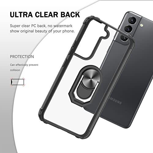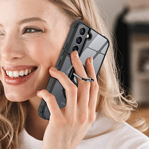 LeYi per Cover Samsung Galaxy S22, Trasparente Custodia Rigida Silicone con Anello Magnetica Supporto Difesa Militare Rinforzata Antiurto Bumper per Custodie Originale Samsung Galaxy S22 Nero