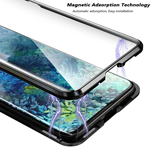 Cover per Samsung Galaxy S20 Ultra 5G,360° Protezione Custodia, Assorbimento Magnetico ad Vetro Temperato Prima e Dopo+Protezione Lente Cover Struttura in Metallo Antiurto Flip Cover Case-Nero