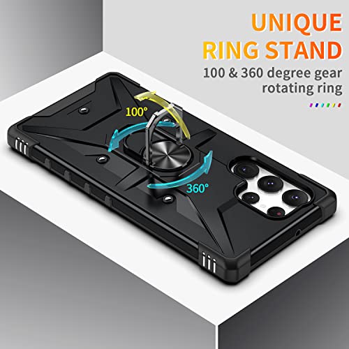 ✅ 【Pratico funzionamento del supporto ad anello】: questo supporto per custodia del telefono per Galaxy S23 Ultra 5G può ruotare di 360 gradi in orizzontale e di 100 gradi in verticale per le chat video. È più comodo giocare, rilassare le dita e la piastra metallica può essere adsorbita sul supporto magnetico per auto. Fa un grande regalo per uomini e donne, ragazzi e ragazze.