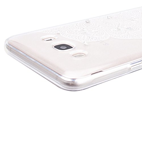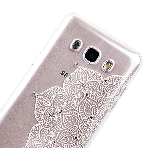 Cover per Samsung Galaxy J5 2016, VemMore Custodia in Trasparente Silicone TPU Case con Bling Diamante Strass Glitter Design Caso del Chiaro Cristallo Ultra Sottile Protettiva Backcase Copertura con Anti Graffio Antiurto Elegante Fiore Pattern Shell - Fiore Mzzo Mezzo Bianco