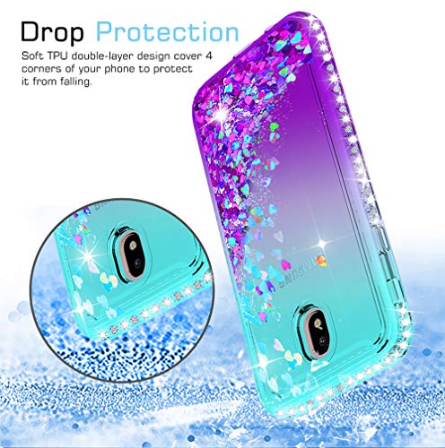 LeYi Cover per Samsung Galaxy J7 2017 con Vetro Temperato [2 Pack],Glitter Brillantini Diamond Silicone Sabbie Mobili Bumper per Custodie Samsung J7 2017 PRO J730 Turquoise Violet Gradient