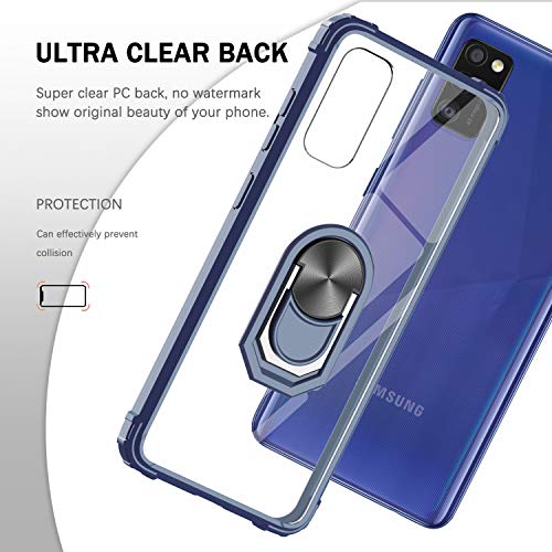 LeYi per Cover Samsung Galaxy A41 con Vetro Temperato [2 Pack],Trasparente Custodia Rigida Silicone con Anello Rinforzata Antiurto Bumper per Custodie Samsung Galaxy A41 Blu