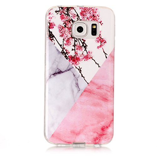 Cover per Samsung Galaxy S6 EDGE Wanxida Marmo Modello Custodia in Silicone TPU Cover Soft Clear Case Bumper Cover Leggera Sottile Custodia Morbida Liscia Cassa Antigraffio Antiurto Cover Protettiva-Marmo fiorito di prugne