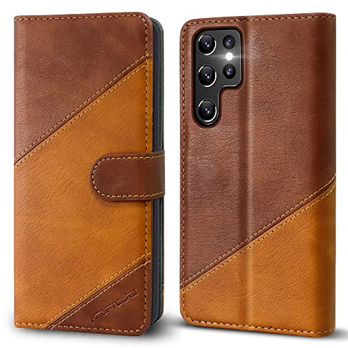 Cover per Samsung S22 Ultra con 1 Pezzi Proteggi Schermo, KRAFTCARE Flip Custodia in Pelle PU Portafoglio per Samsung Galaxy S22 Ultra 5G, Slot Schede Supporto e Magnetica Cover S22 Ultra, Marrone