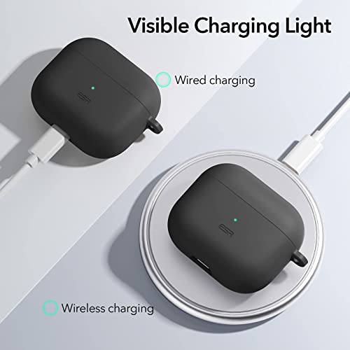 ESR Cover in Silicone Compatibile con AirPods 3 (2021), Cover Protettiva con moschettone, Ricarica Wireless Compatibile, Cover Rigida Portatile Antiurto, Serie Bounce, LED Anteriore visibile, Nero
