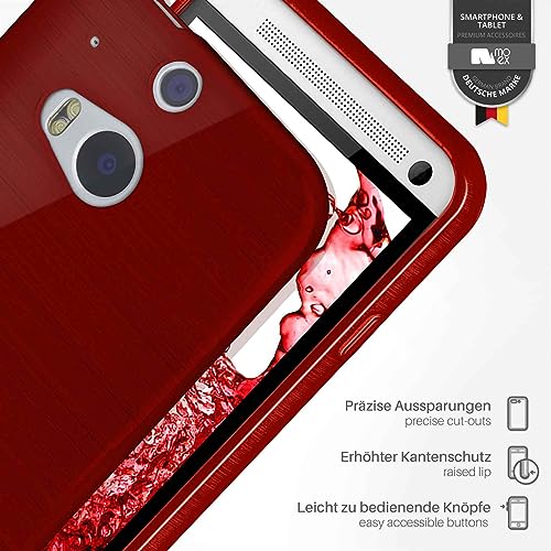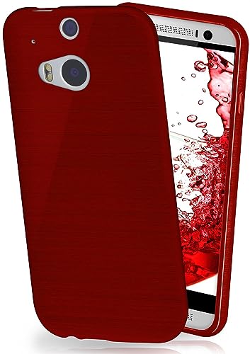 Moex Cover in Silicone Compatibile con HTC One M8 / M8s | Effetto Alluminio Spazzolato, Rosso Borgogna